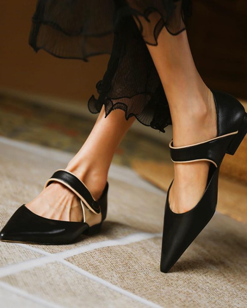 Pointed Toe Button Design Slip On Shoes, Black