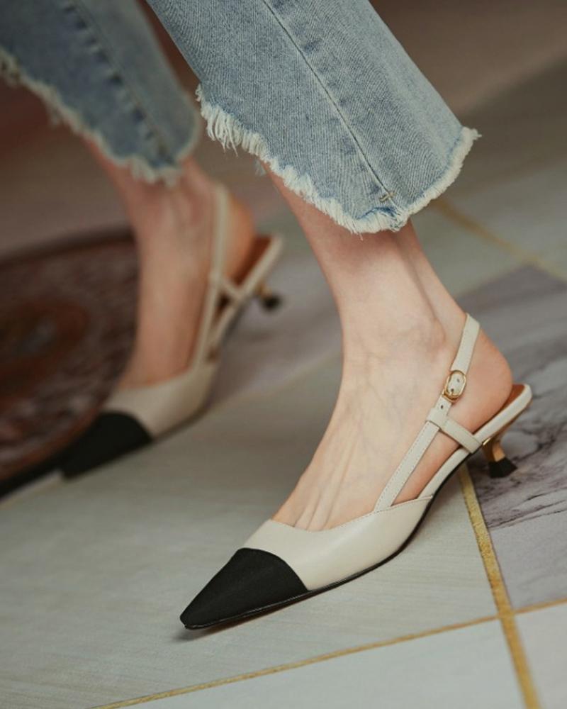 Pointed Toe Colorblock Slingback Heels, Beige