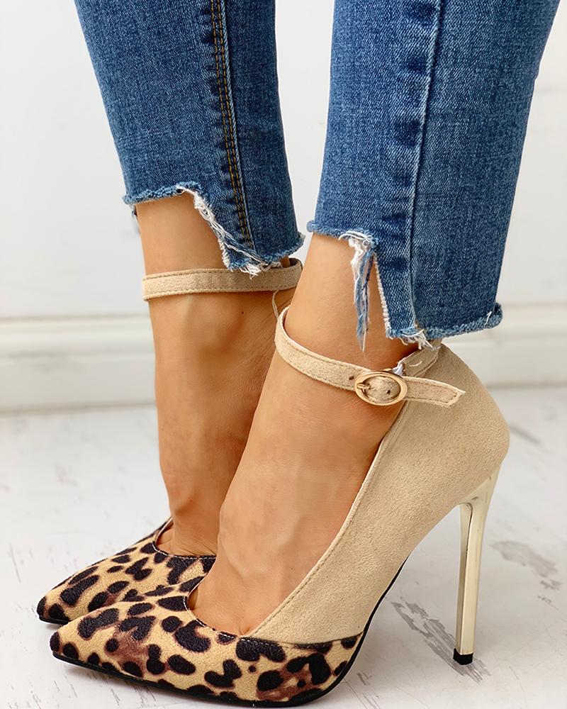 Pointed Toe Leopard Insert Thin Heels