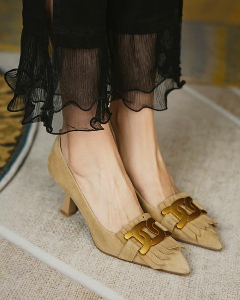 Pointed Toe Metal Decor Suede Pyramid Heels, Apricot