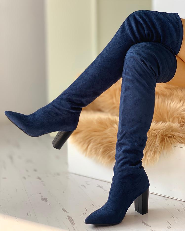 Pointed Toe Over The Knee Boots, Blue
