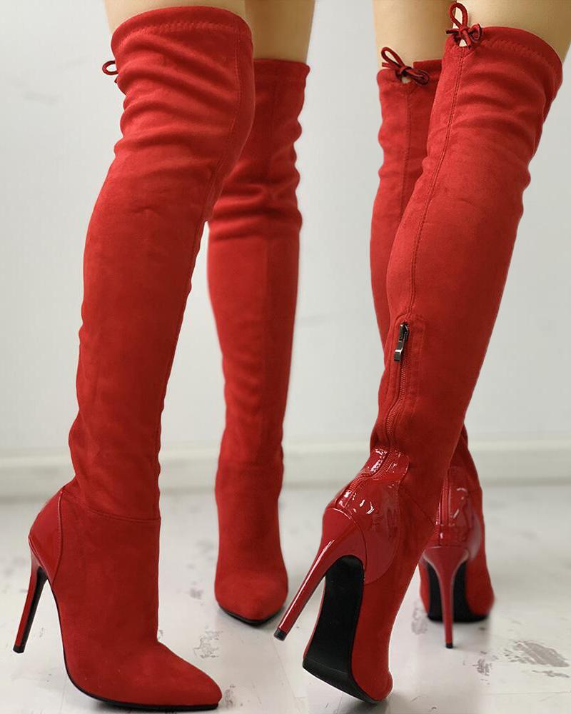 Pointed Toe Over The Knee Boots, Red