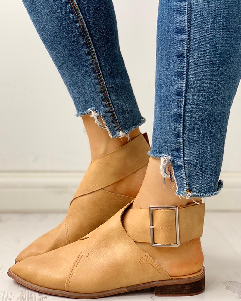 Pointed Toe Slingback Buckled Detail Shoes, Apricot