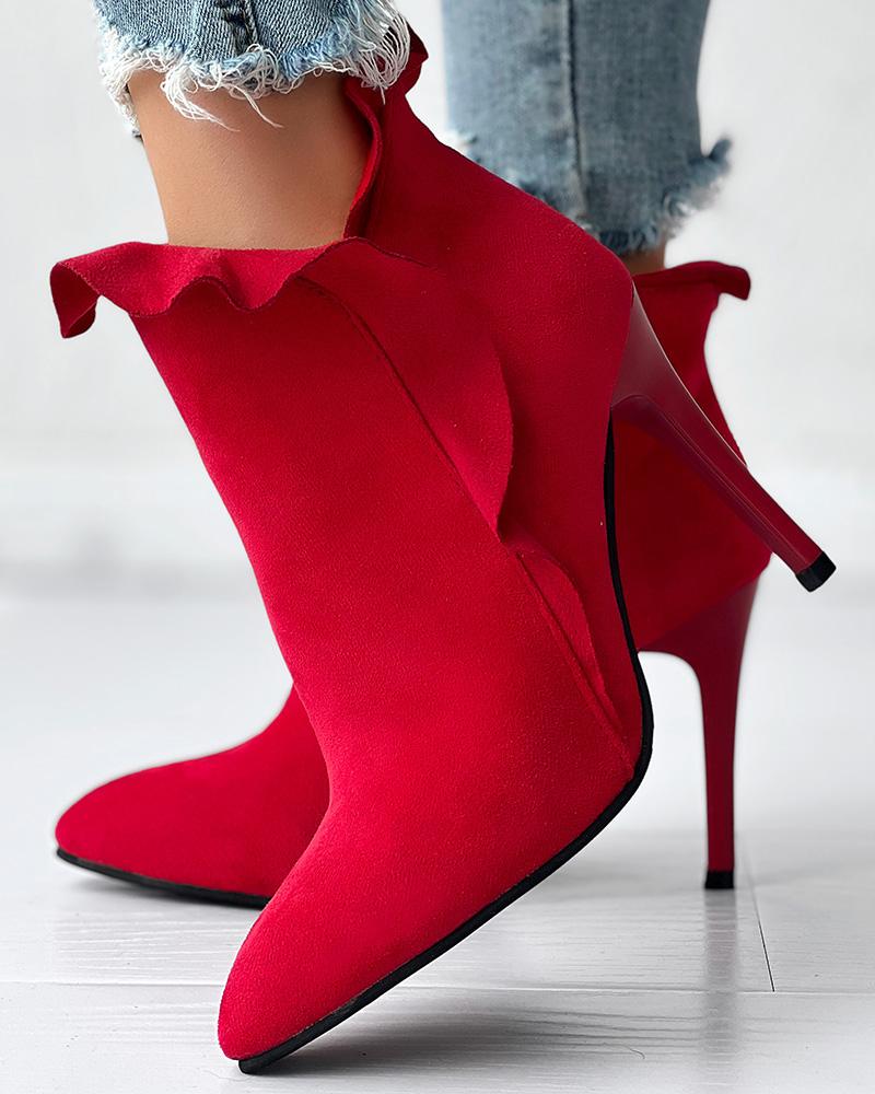 Pointed Toe Zipper Design Thin Heeled Boots, Red