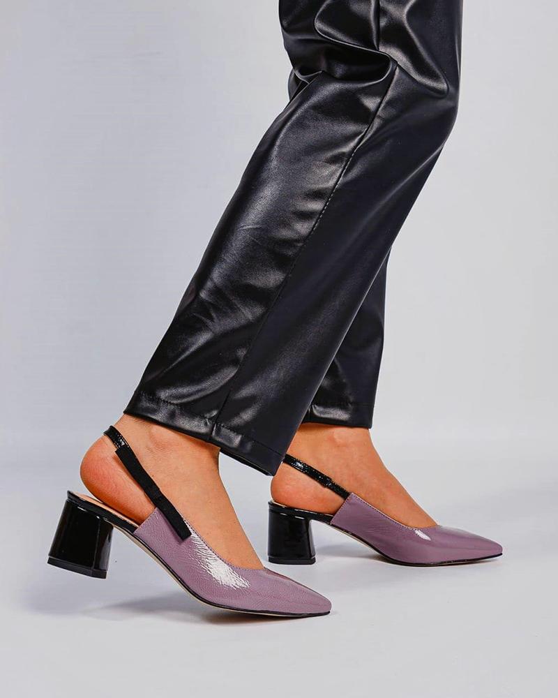 Pointed-toe Color Block Lacquered Leather High Heels, Purple