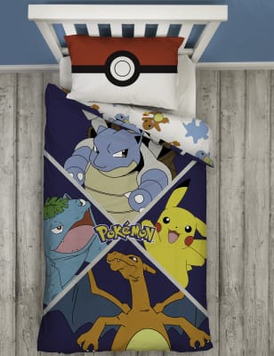 Gotta catch all the z's - and they will with this official Pokemon single bedding set. Your little Pokemon master will be dreaming of all their favourite Pokemon with this Poke-tastic duvet cover with everyone's favourite characters on it. With a an alternate design on the reverse it truly is two sets in one. Crafted from a polycotton blend, it's machine washable and easy to maintain.