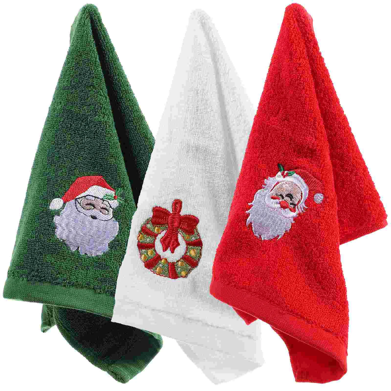 3Pcs Christmas Style Skin-friendly Water Absorption Towel Cotton Bathing Towel Random Pattern