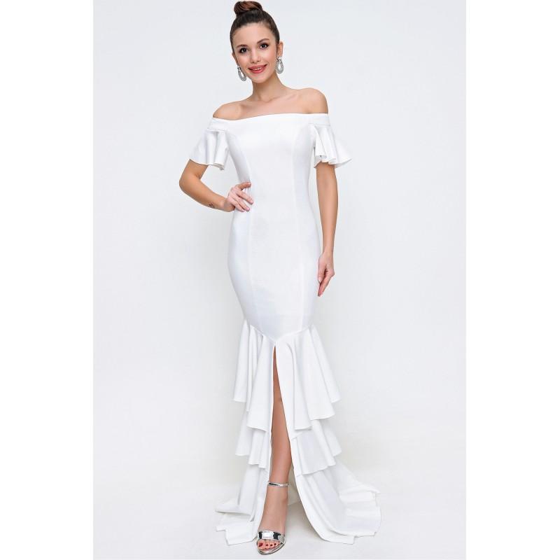 Msikoods Red Saudi Arabia Prom Dresses V Neck Tiered A Line Sleeves Party Gowns Tea-Length Dubai Women Evening Dress