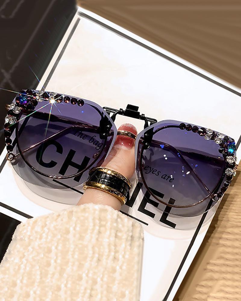 Polarized Rhinestone Ombre Rimless Clip-on Flip Up Sunglasses Clip For Prescription Glasses, Style2