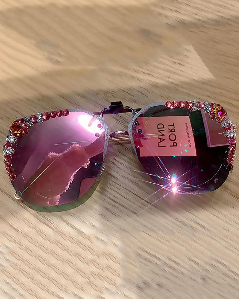 Polarized Rhinestone Ombre Rimless Clip-on Flip Up Sunglasses Clip For Prescription Glasses, Style4