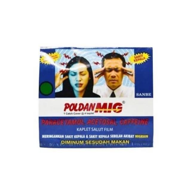POLDAN MIG merupakan obat yang mengandung Paracetamol, Acetosal, dan Caffeine. Obat ini digunakan untuk meredakan demam, sakit kepala karena migrain, sakit gigi, sakit telinga, nyeri haid, dan nyeri ringan lainnya. Paracetamol merupakan analgetik dan antipiretik, Acetosal merupakan golongan obat Anti Inflamasi Non Steroid (AINS), dan Caffeine merupakan stimulan sistem saraf pusat untuk mencegah kantuk.