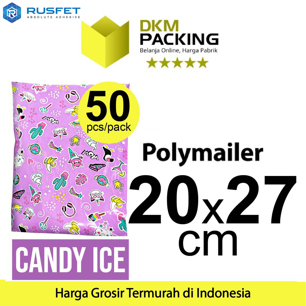 Polymailer 20cm x 27cm Polimailer Amplop Plastik Packing RUSFET Motif Candy / PACK
