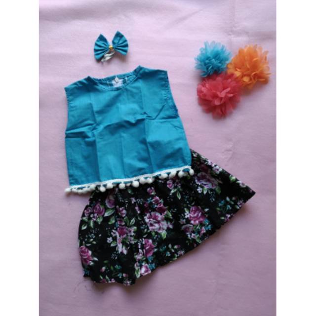 Pompom Set terdiri dari: Top, Skirt dan Simply Bow Bandana.