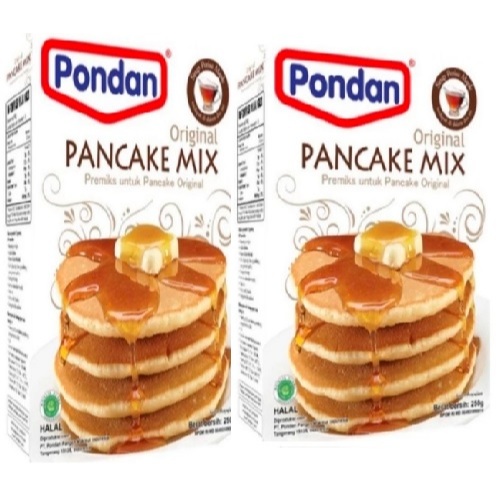 Dengan Pondan Tepung Premix Pancake Mix Original 250gr Anda bisa membuat pancake yang lezat dengan tekstur yang sempurna. Kemasannya berisi 250 gram tepung premix berkualitas tinggi dengan rasa klasik asli. Dalam satu kemasan ini bisa menghasilkan sekitar empat sampai lima potong pancake.
