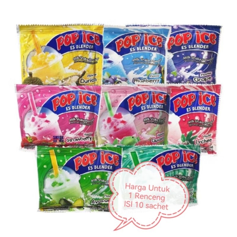 Pop Ice ES Dlender 1 Renceng Isi 10 Sachet - MINUMAN SERBUK ANEKA RASA