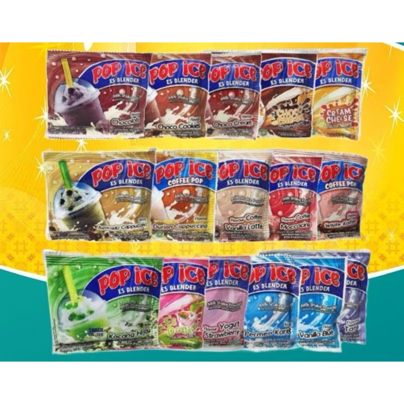 Pop ice rasa strawberry, melon, dan chocomalt