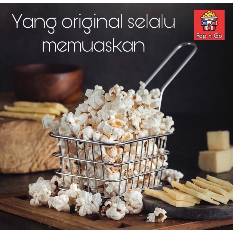 popcorn dengan rasa original dari butter beraroma yang wangi dan ada sedikit asin biar popcornnya terasa nikmat. sekarang kamu bisa ciptakan nuansa bioskop di rumah bersama Pop n Go.