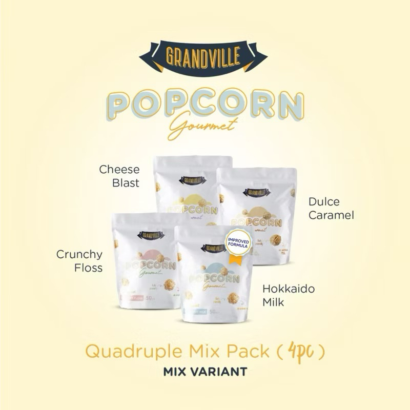 Grandville Gourmet Popcorn merupakan produk popcorn kids friendly yang aman untuk dikonsumsi siKecil. Menggunakan bahan dasar premium yaitu jumbo mushroom kernels sehingga bentuk popcorn yang besar dengan tekstur yang crunchy membuat Grandville Popcorn cocok untuk menemani aktifitas siKecil kapanpun dan dimanapun.
