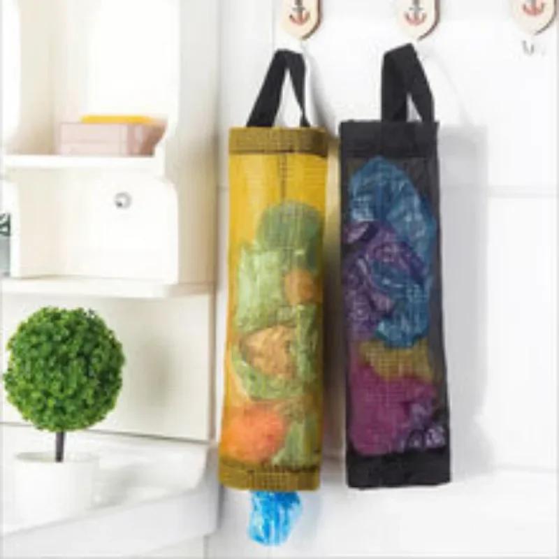 Portable Home Storage Mesh Woven Bag Holder Wall Mount Grocery Bag Dispenser Hanging Trash Garbage Bag Kitchen Toilet Organizer серый