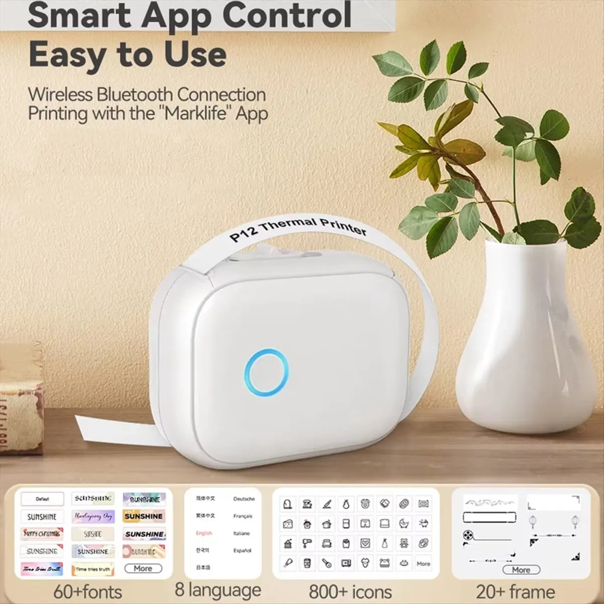 Portable Label Maker P12 Wireless Bluetooth Continuous Label Printer Label Maker Machine for Storage Office Home,A