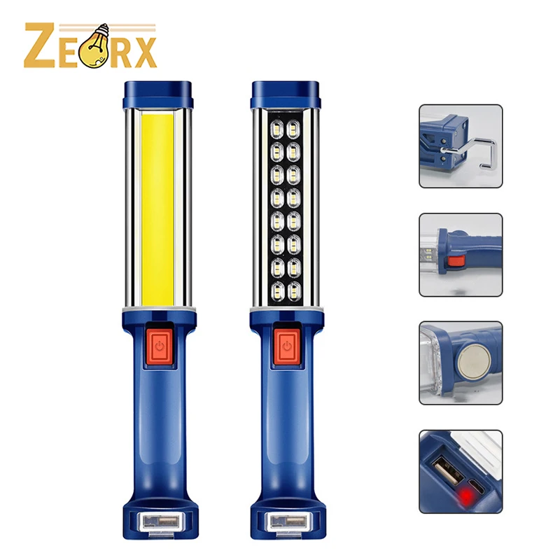 Portable Rechargeable COB/LED Work Light, Super Bright Handheld Light with Magnetic Base and Hanging Hook for Garage, Repairing