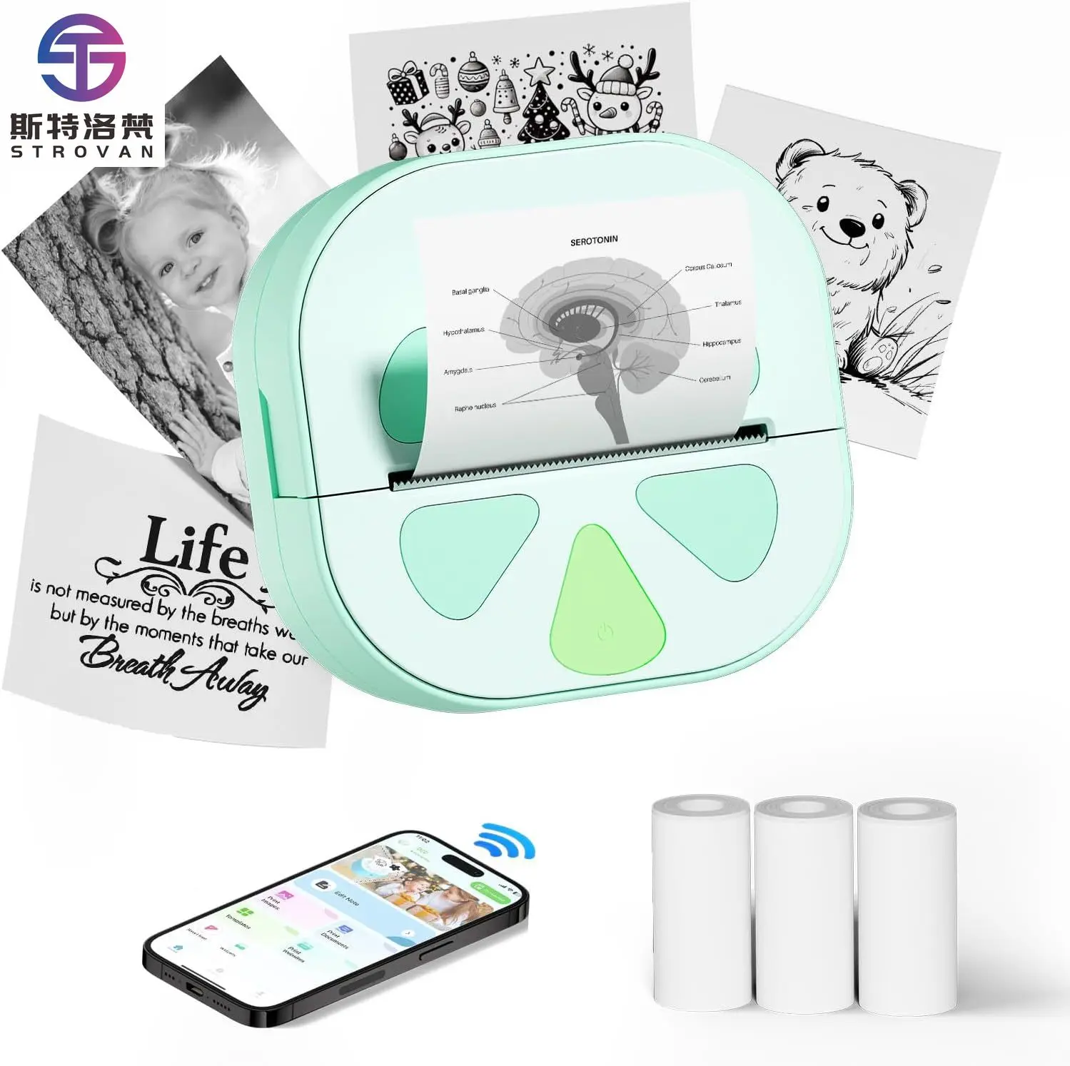 Portable Thermal Sticker Labels Printer 57mm Max Paper Size for Wireless 20-30mm/s Speed Travel Use