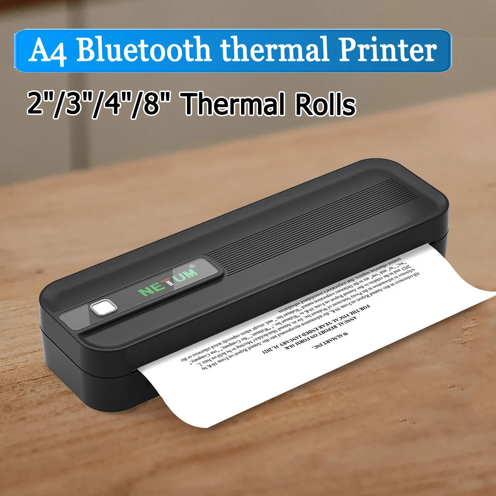 Portable thermal A4 printer student homework printer Bluetooth enabled mobile phone connection wireless small office printer