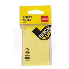 Post it / Stick Notes merek Deli warna kuning ukuran 76x51 mm. Harga tertera merupakan harga per pack yang berisi 100 lembar.