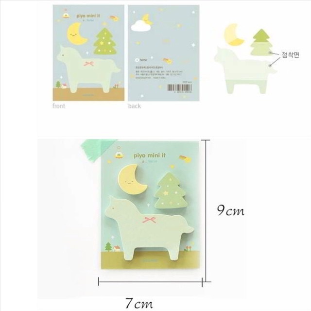 Post it lucu yang terdiri dari bentuk kuda, bulan dan pohon.