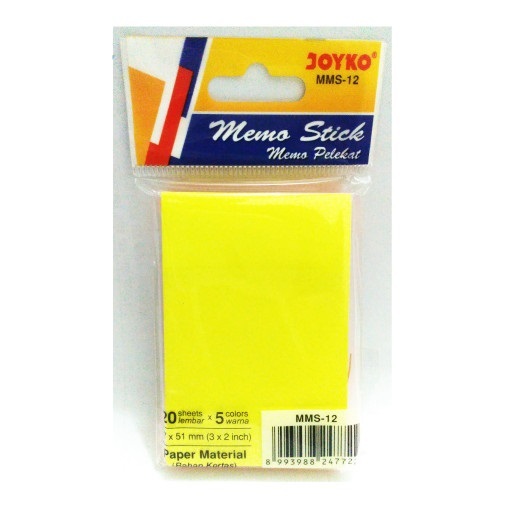 Sticky Note (77 x 51mm) Joyko MMS-12 adalah kertas memo yang di beri perekat removable berfungsi untuk meninggalkan pesan / sebagai memo informasi kepada orang lain biasa diletakkan ditempat penting atau mudah terbaca oleh orang lainnya. Dilengkapi dengan perekat removable yang dapat di tarik dan di tempelkan kembali (tidak permanen). Harga tertera per pak