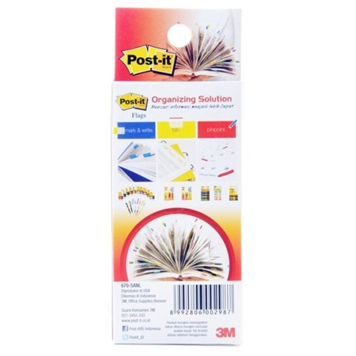Post It Page Marker 670-5ANL 3M adalah Post it catatan kecil warna warni yang biasa digunakan sebagai catatan kecil yang biasa ditempel di papan jadwal, kertas, buku tulis maupun dokumen dan filling file lainnya. Keunggulan produk ini mempunyai daya rekat yang kuat dan akan tetap menempel meskipun ditempel pada permukaan kertas yang melengkung. Berfungsi sebagai penanda dan catatan kecil pada dokumen dan catatan anda. Harga tertera adalah satuan per pack