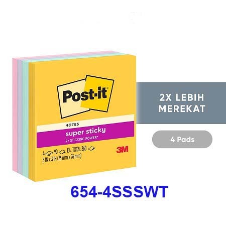 Post-It Super Sticky Notes 3M 654-4 Warna