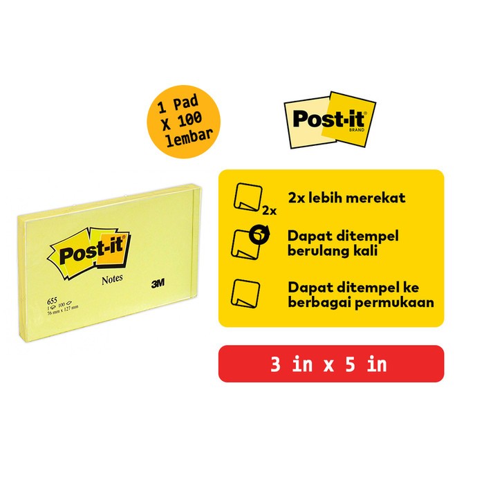 Post-it Notes 3M 655 Kuning 3"x5" (76x127mm) 100 sheets