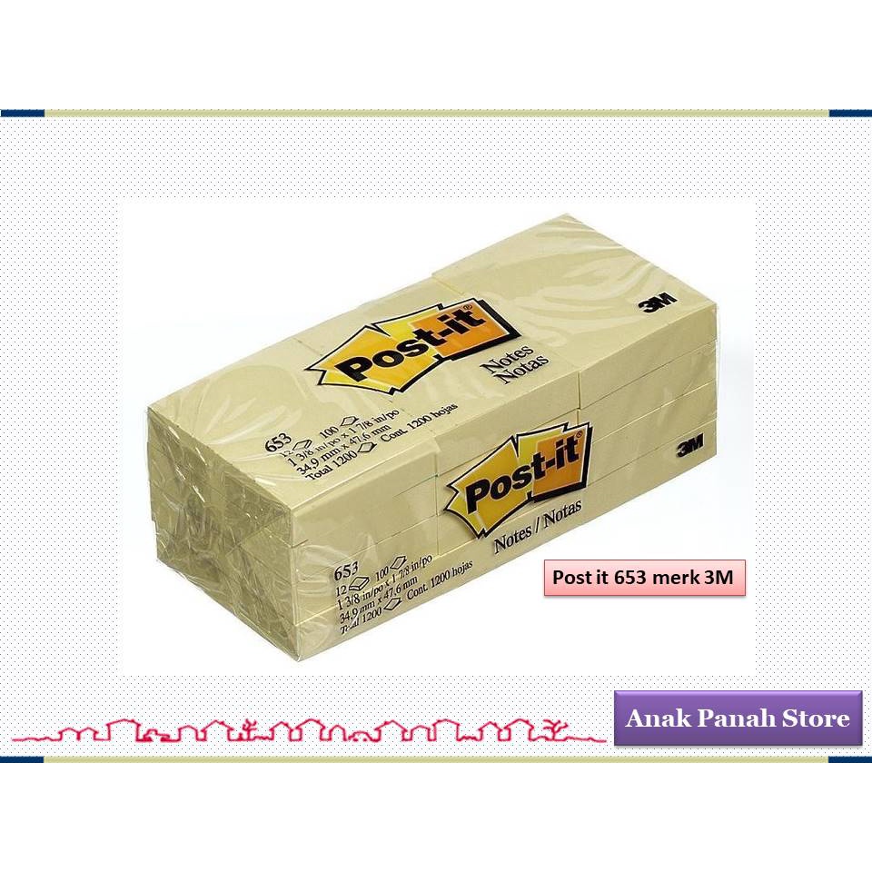 Post it / Stick Note 653 Merk 3M ( Isi 12 pad )
