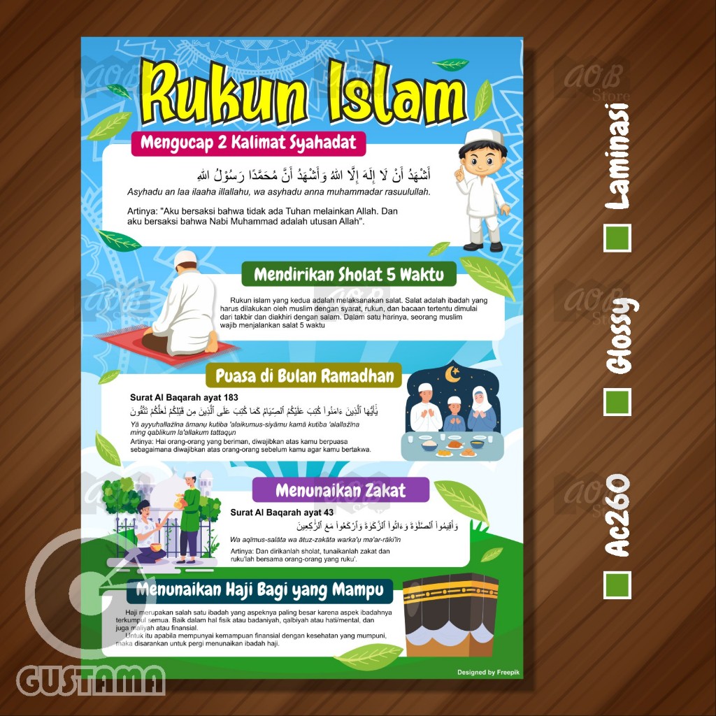 Poster Rukun Islam, Poster Rukun Iman Wipe and Clean A3+