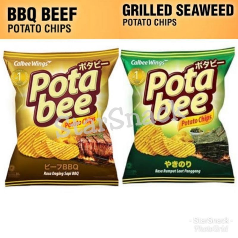 Potabee keripik kentang yang terbuat dari kentang pilihan dengan rasa daging sapi bbq yang enak.