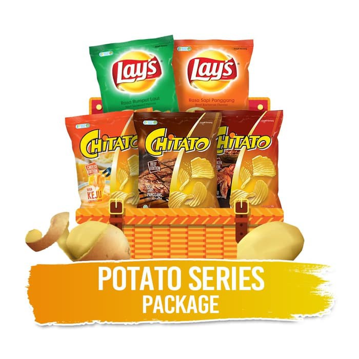 Penikmat keripik kentang tidak akan melewatkan paket ini, Potatoes series package untuk kamu penikmat rasa keripik kentang yang gurih.