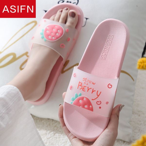 asifn cute cartoon indoor non-slip women home slippers summer ladies pink flip flops zapatos de mujer men mules fruit slides, Black