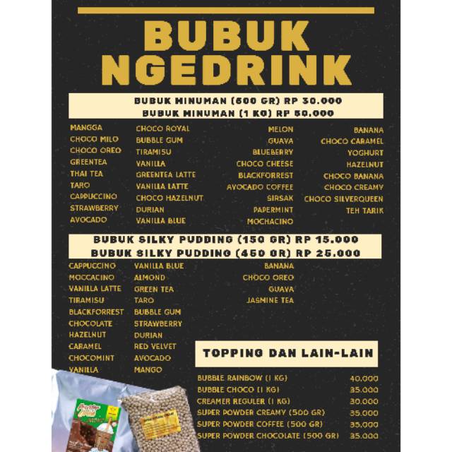 Selain itu kami juga menjual toping seperti Bubble, Creamer.