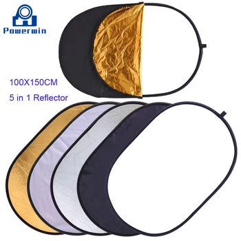 Powerwin 5 in 1 Oval Reflector 100x150cm Collapsible Disc DSLR Camera Flash Studio Video Light Stand Softbox Diffuser Backdrop