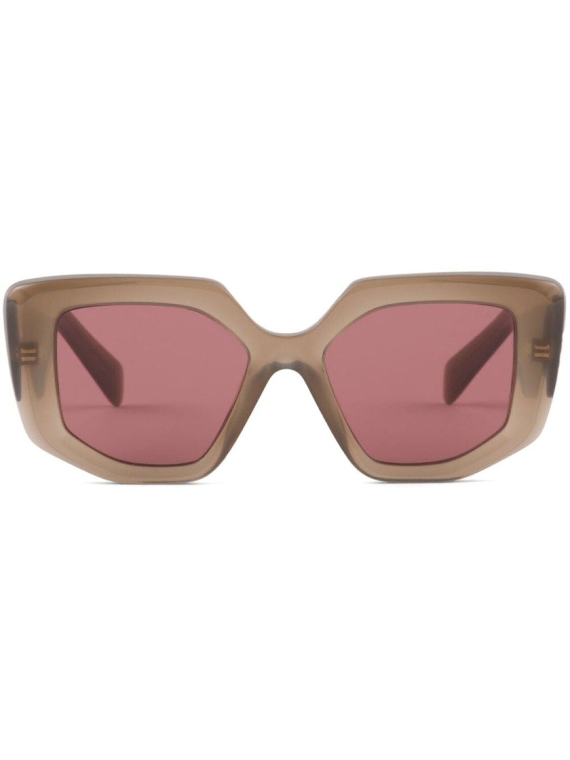 Prada Eyewear солнцезащитные очки с эмалевым треугольным логотипом в большой оправе, коричневый