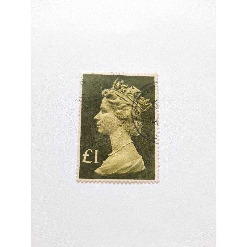 SG1026 1977-87 £1 Tall Format Decimal Machin High Value Stamps. Prangko Queen Elizabeth II Yellow Green Dan Blackish Olive Used(Di cap)
