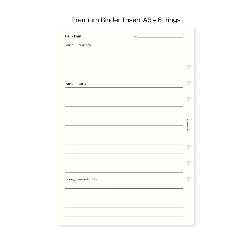 Premium Binder Insert A5 6 Rings by Paperie Lab