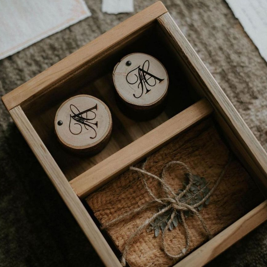 Free 2 Ring Box dan dapat diukir dengan (Nama, inisial, tanggal dan design yang kalian inginkan)