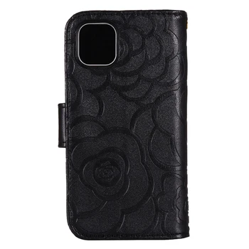 Premium Flip Wallet Leather for iPhone11Pro Max 6.5 Inch with Card Slots Rose Print with Lanyard