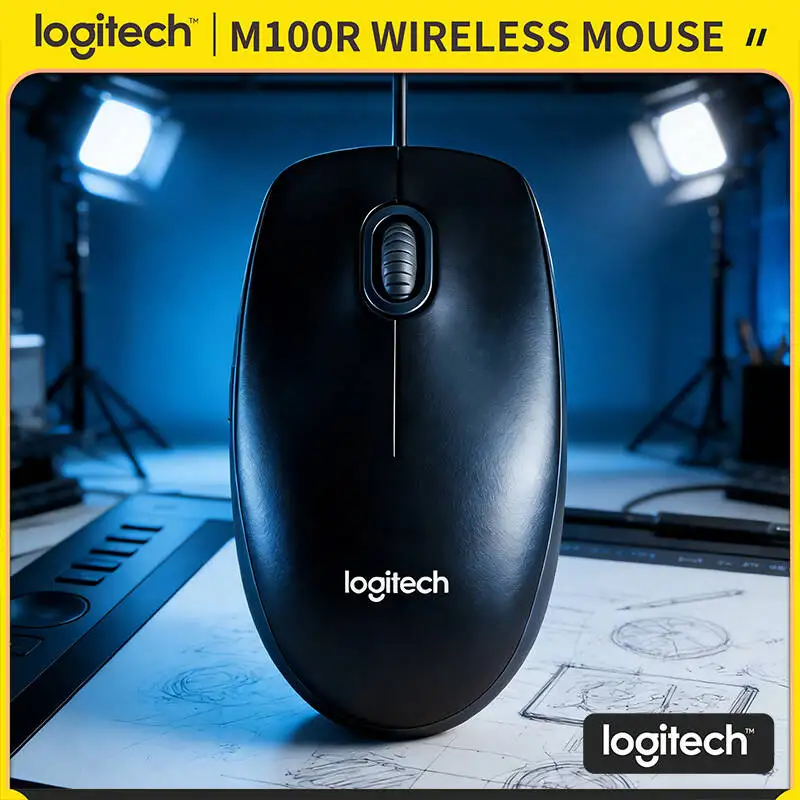Premium Logitech M100R USB Wired Optical Mouse 1000DPI High Precision Plug Play for Office Home School Computer Laptop