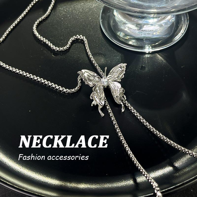 Premium Sense Can Be Pulled Серебряное ожерелье с бахромой в виде бабочки Женское легкое роскошное нишевое дизайнерское модное темпераментное универсальное колье на ключицу