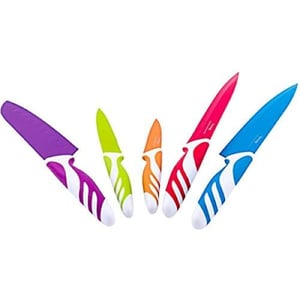 A fantastic, eye-catching set for any kitchen enthusiast, the 5-piece set is also a perfect display for their brilliant colors. The brilliant colors on the series serve dual purposes: color-coding makes it easy to choose the right knife for the job and it helps guard against cross-contaminating food