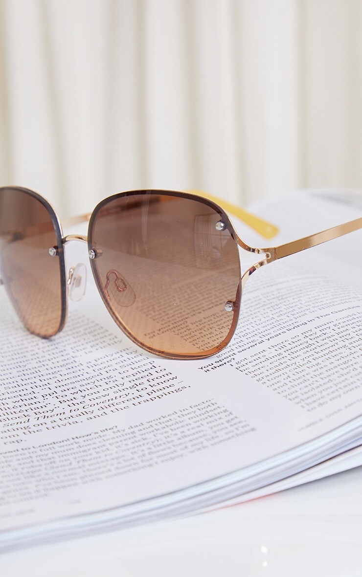 PrettyLittleThing Коричневые большие закругленные солнцезащитные очки без оправы