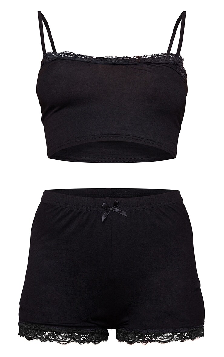 PrettyLittleThing Короткая пижама из черного джерси с кружевной отделкой